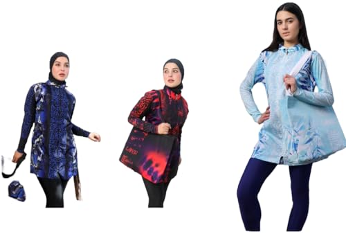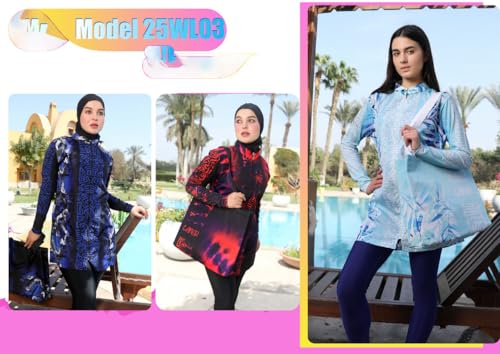 9Street Corner - ملابس سباحة للنساء والبنات بوركينى 4 قطع توب كم طويل وبنطلون وشنطة بحر من نفس اللون وتربون عالى الجودة كود 25WG03
