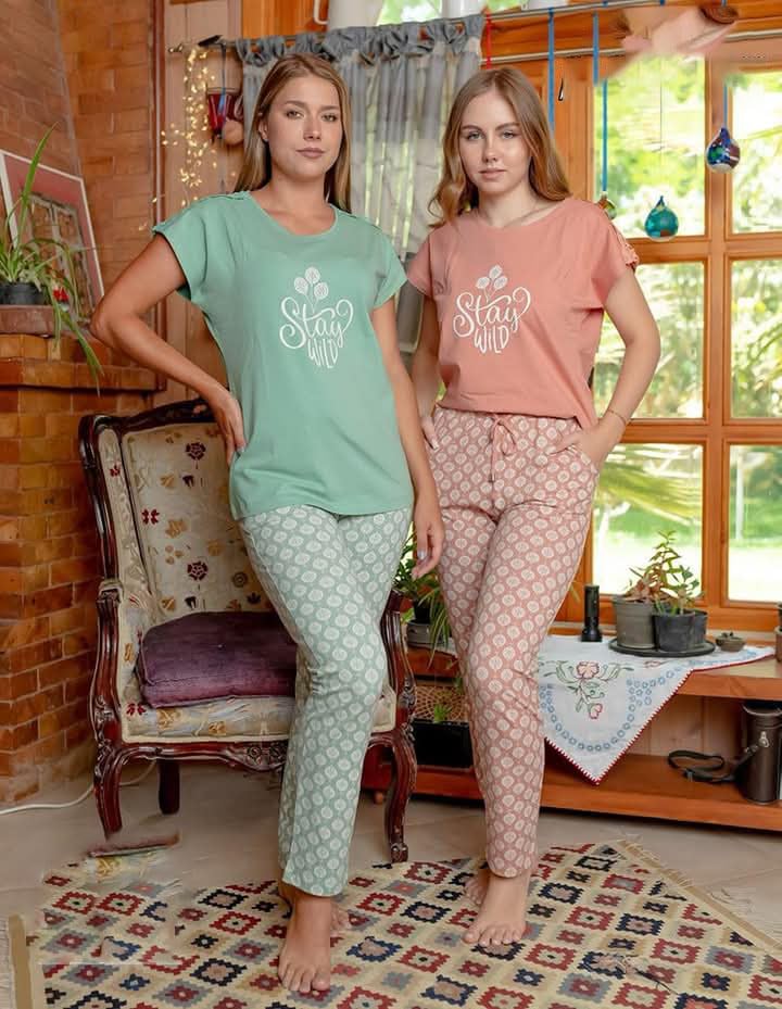 9Street Corner - بيجامة صيفية للنساء والبنات نص كم بتصميم STAY WILD كود pj1378