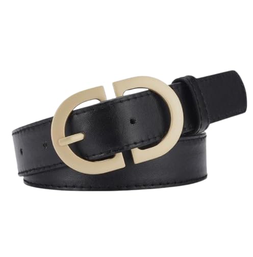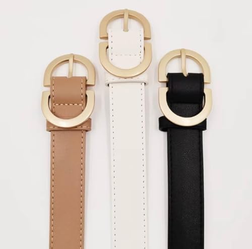 GOGO.EG - مجموعة حزام جلد صناعي للنساء بلون بيج غامق وأبيض وأسود وإبزيم ذهبي - M82
