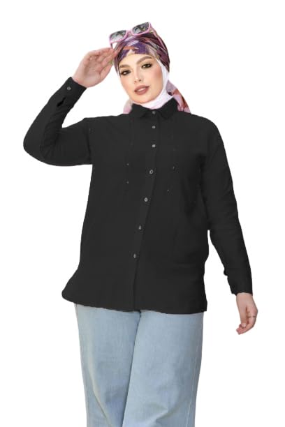 GAMAL SONS FOR ABAYA - قميص حريمي بستايل كاجوال وأزرار أمامية مع تطريز خفيف