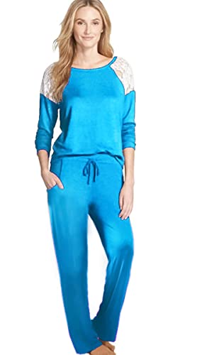 Generic - بيجامة قطنية مزينة بحواف دانتيل للنساء، ابيض