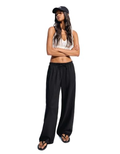 Generic - بنطلون واسع نسائي قطن كتان، أسود، مقاس ٥٠-٩٠ كجم