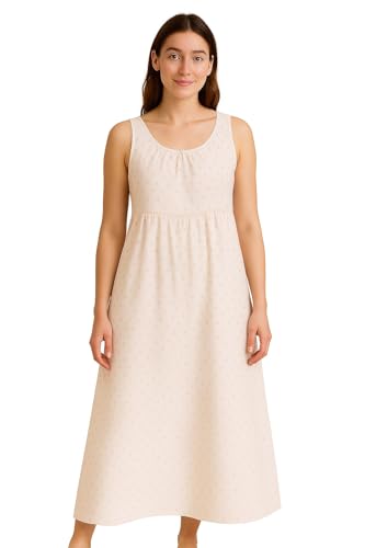 Generic - قميص نوم قطن بدون اكمام للنساء، نمط منقط كريمي، خصر امبراطوري، طول الكاحل، ملابس نوم كاجوال صيفية