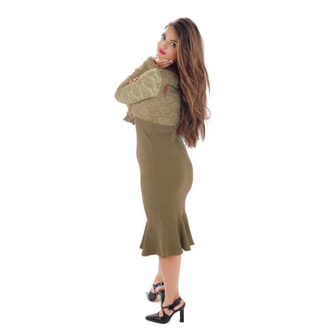 Generic - فستان نسائى بصدر دانتيل مبطن وجيب اسكوبا واكمام واسعة