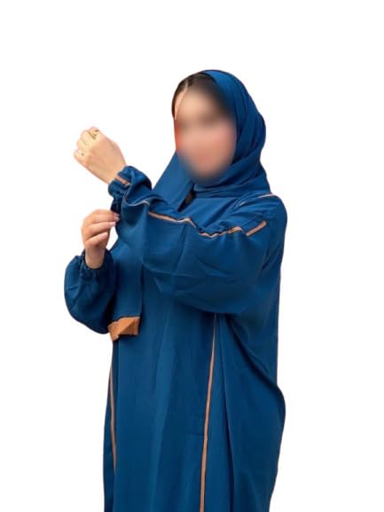 Generic - فستان اسدال اسلامي محتشم بقصة فضفاضة واكمام طويلة واطراف برتقالية للنساء (حتى 120 كغم)