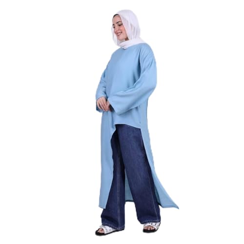 Generic - عباية طويلة نسائية، لون أزرق فاتح، مع جينز، تصميم عصري سيز