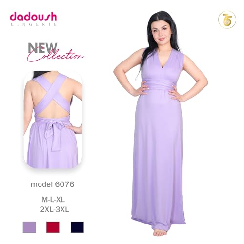 Dadoush - قميص نوم نسائي طويل بحمالات عريضة وموديل X للظهر - فسان نسائي طويل كاجوال