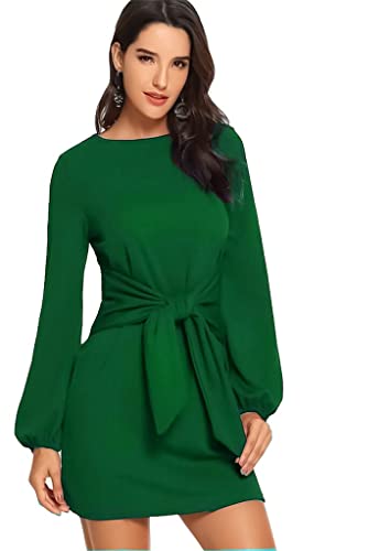 Generic - بلوزة أخضر نسائى طويلة بحزام من الوسط