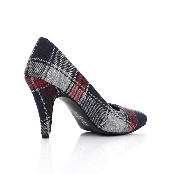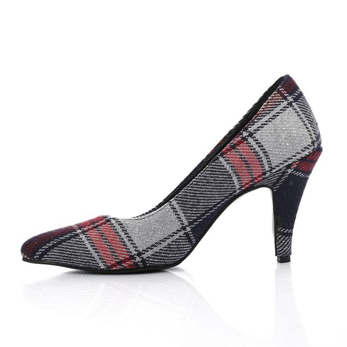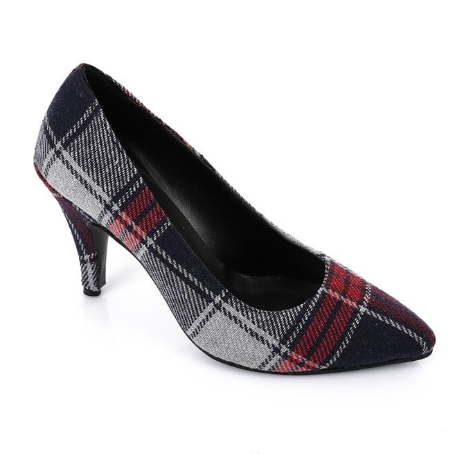 Generic - حذاء بكعب عالي كاروهات بطرف مدبب للنساء