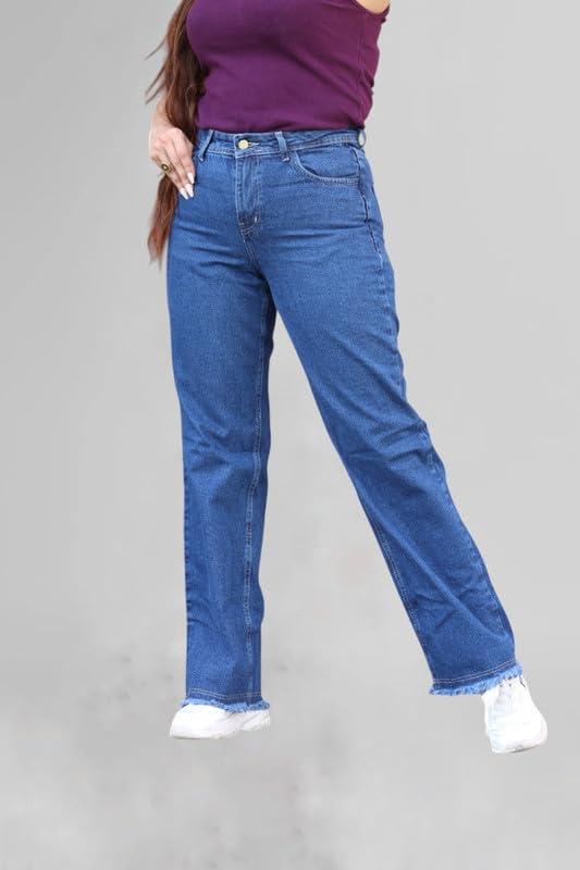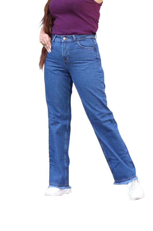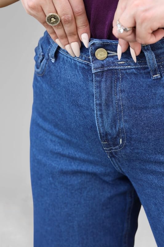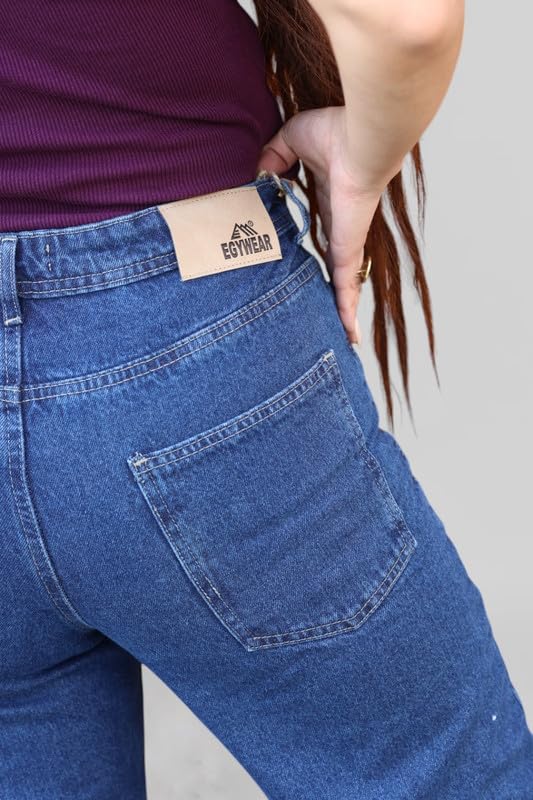 EGYWEAR - بنطلون جينز بقصة عادية للنساء بلون أزرق