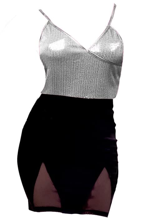 Generic - فستان قصير بالترتر للنساء بلون فضي