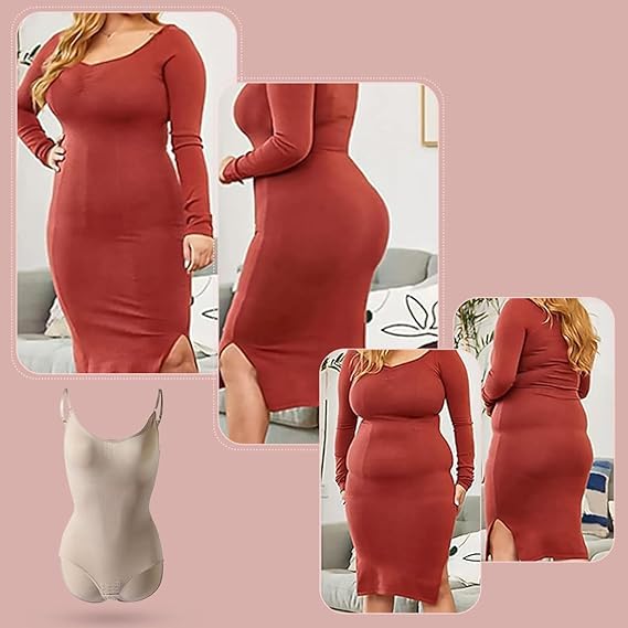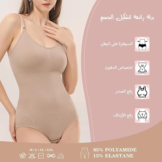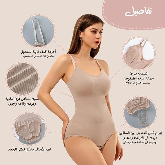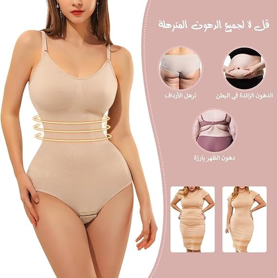 Generic - سالوبيت بكباسين للنساء لتخسيس ونحت الجسم بتصميم مخدة لحماية منطقة الصدر من قماش منسوج مرن وفتحة بين الفخذين مناسب لنحت الخصر والورك