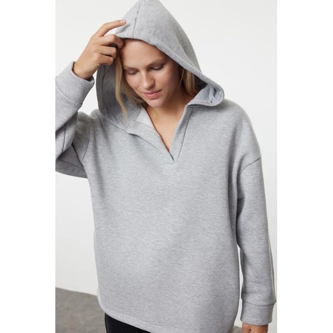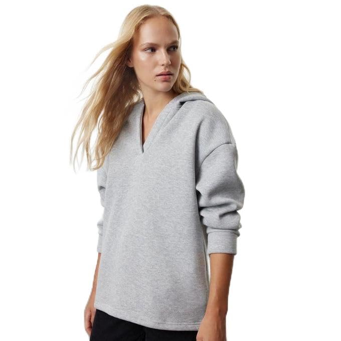 Generic - هودي رياضي نسائي بقلنسوة، رمادي فاتح، تصميم عصري مريح