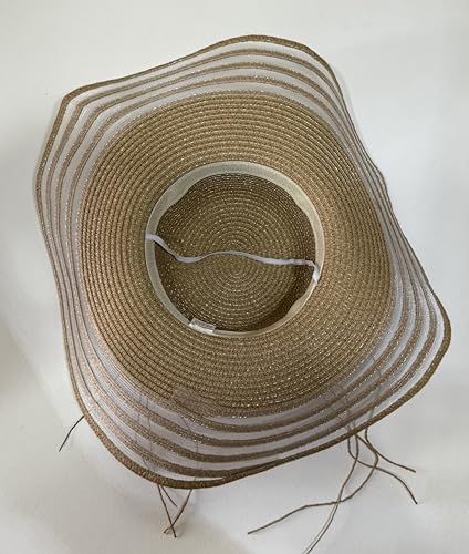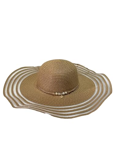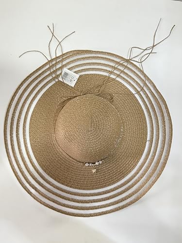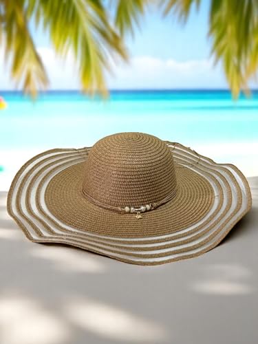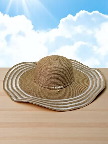 Generic - طاقية شمس من القش للنساء، مناسبة للعطلات الصيفية على الشاطئ، تصميم قابل للطي ومزين بترتر صدفي، هيكل مزود بمسامات للتهوية