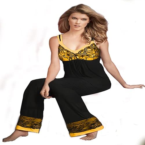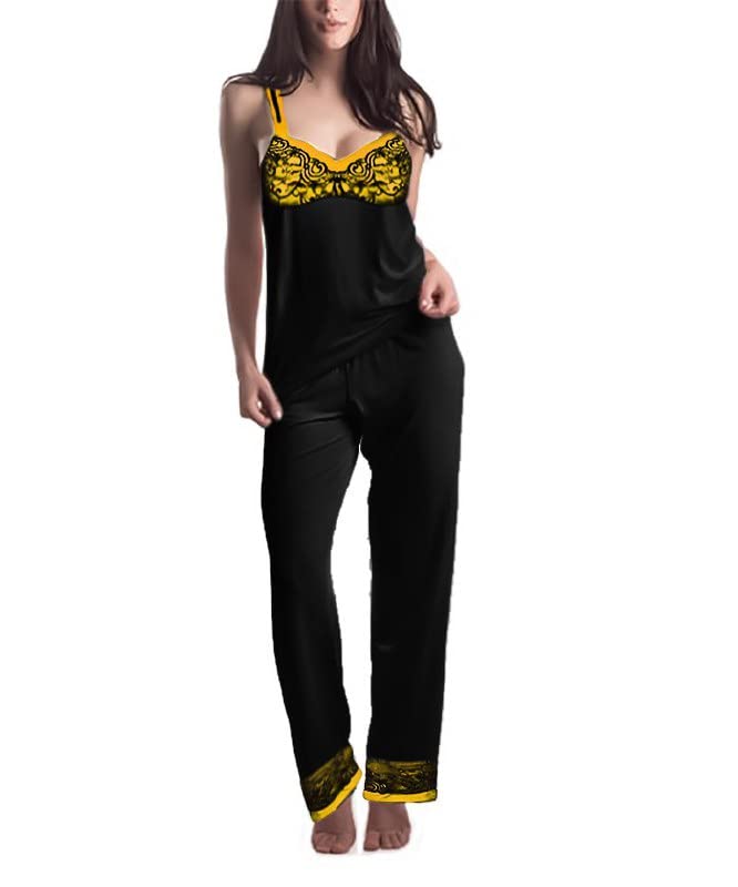 Generic - بيجامة نسائى توب بحمالات وبنطال مزينة بدانتيل