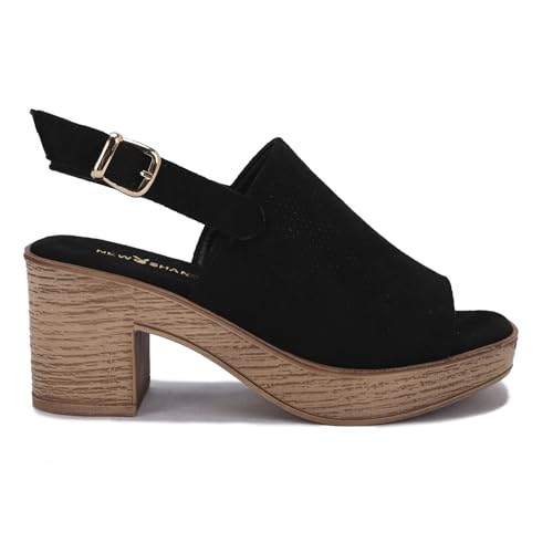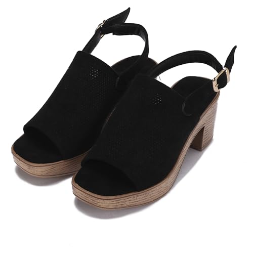 Generic - صندل نسائي بكعب عريض وتصميم عصري أنيق – خامة مخملية مطرزة - مزود بأبزيم لاضافه شكل مميز