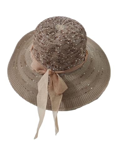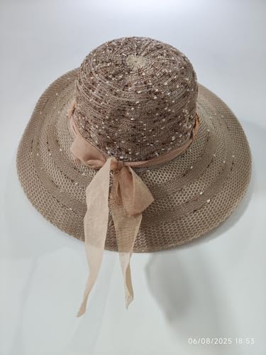 Generic - قبعة شمس من القش بتصميم نسيج محبوك وحافة عريضة مزينة بفيونكة للنساء