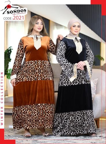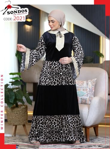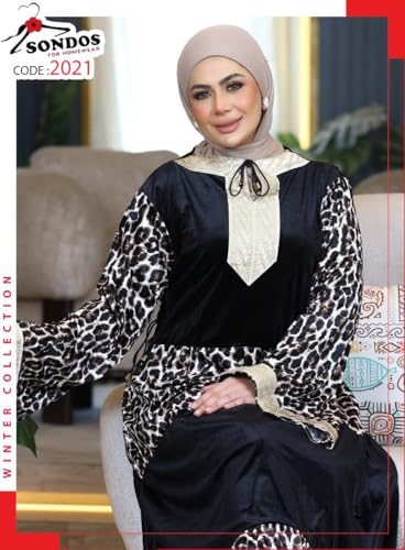 SONDOS FOR HOMEWEAR - عباية شتوية نسائية من سندس، مصنوعة من المخمل والوبر، مع قلنسوة وجيوب، مقاس 60-90 كجم، بتصميم فاخر عصري