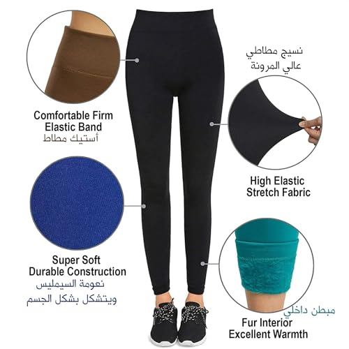 Generic - بنطلون ليجنز شتوي حراري للنساء، أسود، بطانة فرو داخلية، قماش مطاطي عالي المرونة، حزام خصر مطاطي مريح