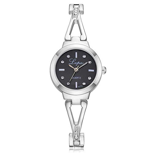 Generic - ساعات معصم للنساء بخليط معدني للطالبات، مقاس S بلون روز جولد وبواجهة سوداء (لون: فضي ابيض)، انالوج