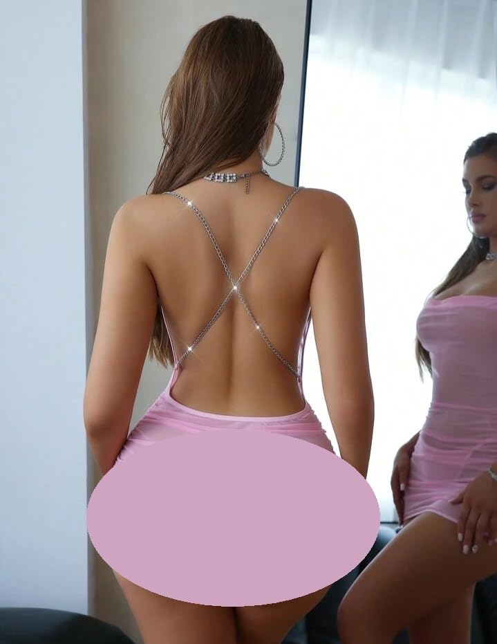 Generic - ملابس نوم حريمي مثيرة لانجري بنمط فستان شفاف للغاية مع ظهر مكشوف تماما يجعلك ملكه فى عالم الإثارة، قميص نوم أنيق شفاف من FOUR H كود 591