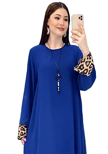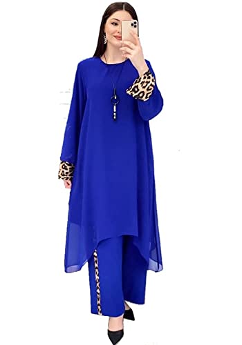 Generic - طقم ملابس مكون من تونيك وبنطلون للنساء، لون ازرق مع اجزاء بنقشة جلد النمر