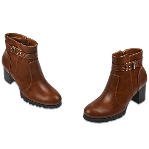 Generic - بوت جلد بطول الكاحل بسوستة جانبية للنساء، لون اسود، موديل h-2008