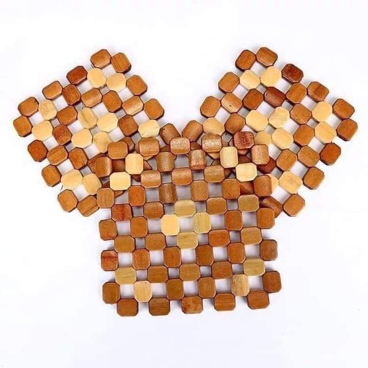 • تصميم فني: نمط فسيفساء خشبي جذاب بتدرجات البني المتعددة، يضيف لمسة عصرية لطاولة الطعام