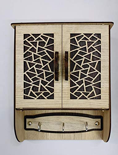 Other - حامل مفاتيح خشب للحائط شكل ديكور، بيج