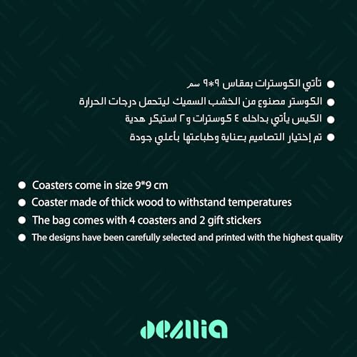 Dezllia - طقم قواعد أكواب خشبية مربعة - 4 قطع - كوستر /14
