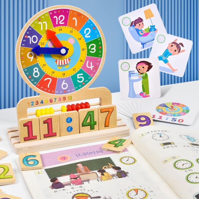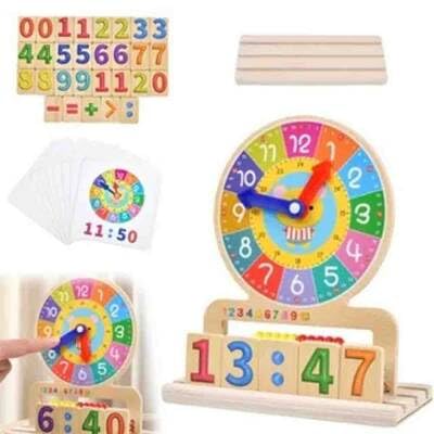 ساعة خشبية للأطفال متعددة الوظائف