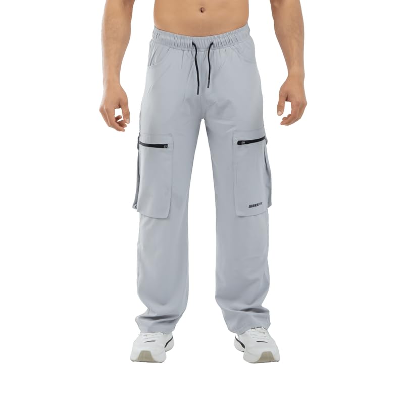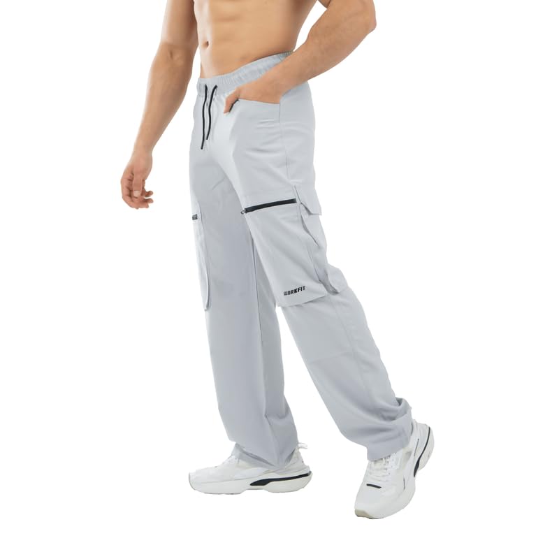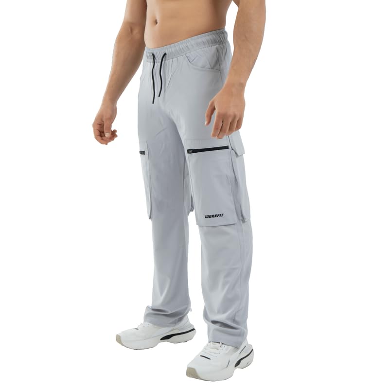 Work Fit - سروال كارجو بوليستر كبير الحجم للرجال مناسب للعمل بجيوب جانبية