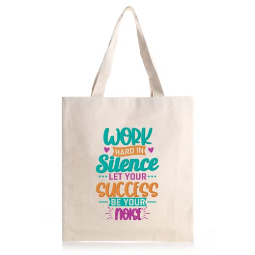Generic - شنطة يد كبيرة توت مطبوعة بعبارة Work Hard In Silence
