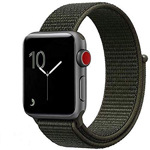 Generic - سوار نايلون ل ساعة أبل الجيل 3/4/5 مقاس 42/44mm اخضر زيتي، أسود، للجنسين