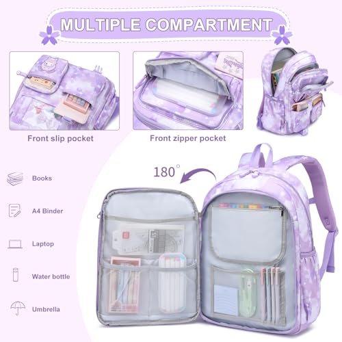 WYCY - شنط ظهر مدرسية للبنات بسعة كبيرة مقاومة للماء مع قسم لأجهزة اللاب توب، شنطة ظهر للبنات للمرحلة الابتدائية من WYCY