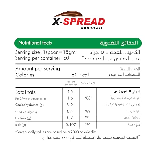 - مذاق اكس سبريد غني ولذيذ يجمع بين نكهة الشوكولاتة الغنية وقطع البندق الطبيعية