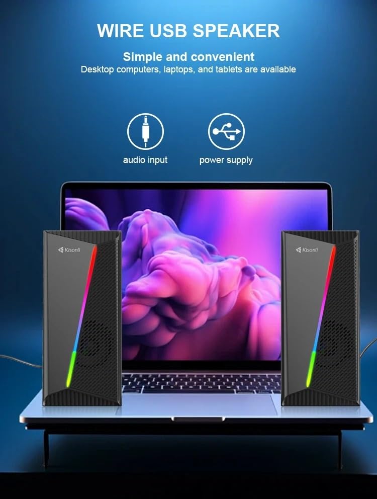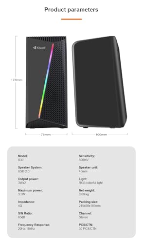 Generic - مكبر صوت X30 متعدد الوظائف مع اتصال USB وصوت قوي 6 وات وإضاءة ار جي بي للكمبيوتر، وحدة مكبر الصوت 45 ملليمتر