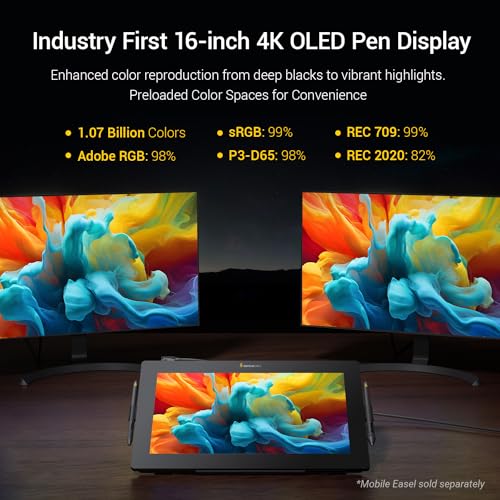 XENCELABS - زدنسيلابس شاشة عرض القلم 16 اساسية، تابلت رسم 4K OLED مع شاشة، شاشة رسم جرافيك محمولة رفيعة للغاية مع حجمين من الأقلام لويندوز/ماك/لينكس، اسود