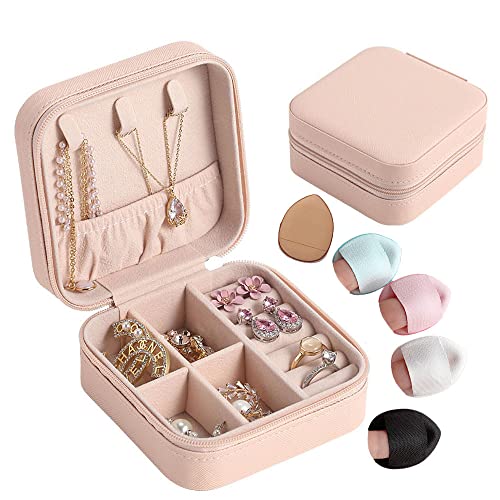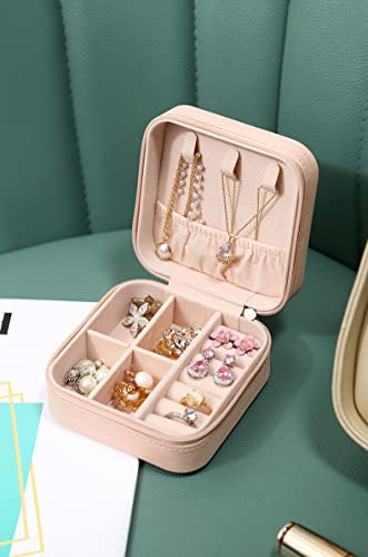 Generic - صندوق مجوهرات صغير للسفر منظم صندوق عرض للبنات والنساء لتخزين الخواتم والاقراط والقلائد (لون بيج نود)، جلد صناعي