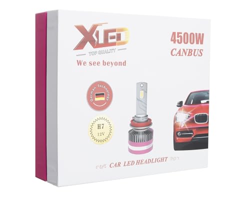 XLED - مصباح أمامي للسيارة H7 من اكس ليد، مصباح كانباص 12 فولت 4500 وات - 2 لمبة، فضي