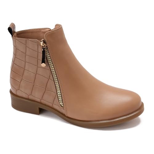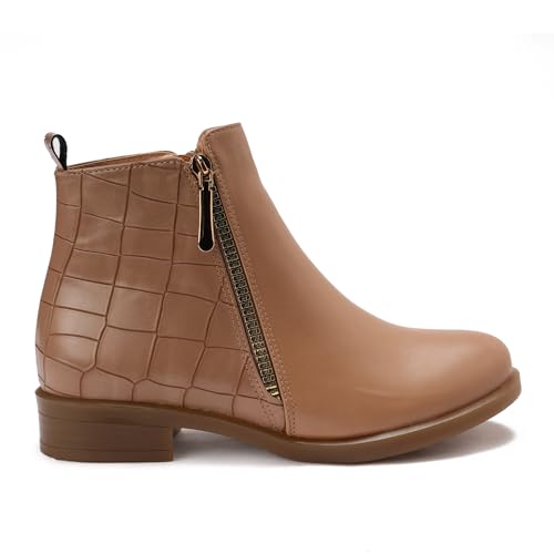 Xo Style - اكس او ستايل بوت بطول الكاحل من الجلد مقاس 37 لون بيج للنساء