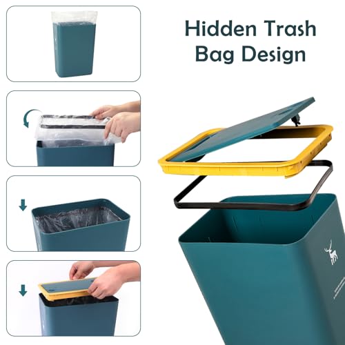 - 【سهلة الاستخدام】المقبض العلوي يجعل من السهل رفع سلة المهملات بيد واحدة مقارنة باستخدام اليدين. تخفي التصميم المدمج لأكياس القمامة بشكل مثالي، ما يسمح لك بالحفاظ على مساحتك مرتبة وصحية.