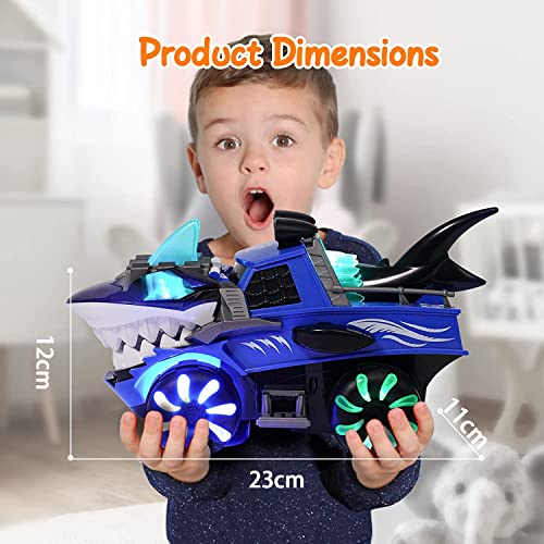 X spring - شاحنة مونستر من اكس سبرينج، لعبة شاحنة مونستر على شكل سمكة قرش مضيئة مع موسيقى وضوء وامض، سيارات لعبة كهربائية اوتوماتيكية للاطفال من سن 1 الى 6 سنوات، هدية حفلة عيد ميلاد للاطفال (قرش)، أحمر