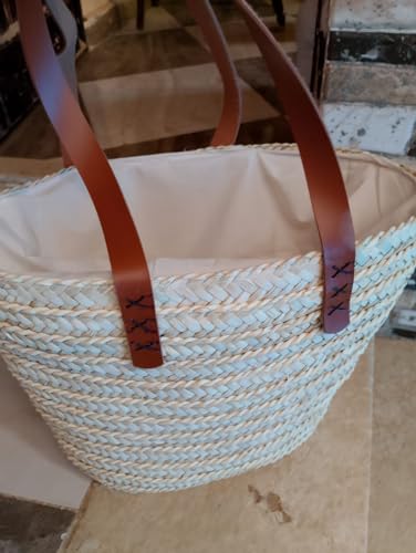 Y&G - شنطة خوص بيد من الخوص بمقبض واي اند جي متعدد الألوان للبالغين الجنسين