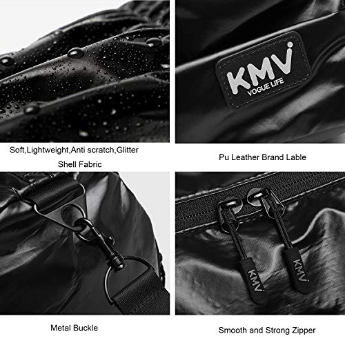 Y.U.M.C. - شنطة دفل لامعة وعصرية للمدرسة وصالة الالعاب الرياضية ورقص الباليه بمساحة لحفظ الاحذية وجيب للملابس الرطبة للنساء والبنات, أسود, One_Size، البوليستر، من واي يو ام سي