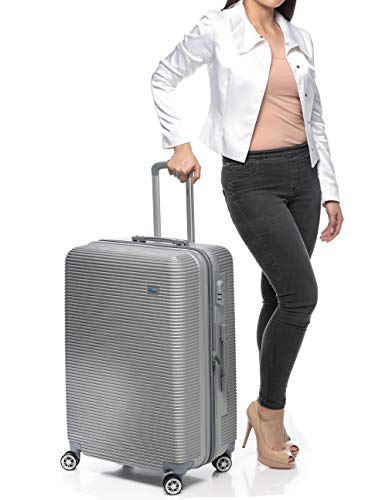 Generic - مجموعة شنط سفر بعجلات من قطعتين بمقابض من بلاستيك ايه بي اس من ياكور - بحجم 20 بوصة/28 بوصة - موديل YC02_Grey، رمادي