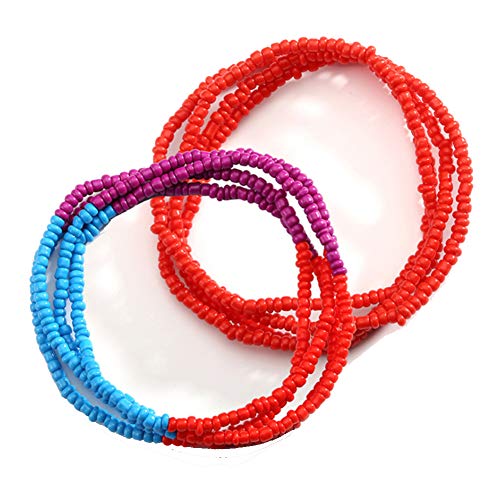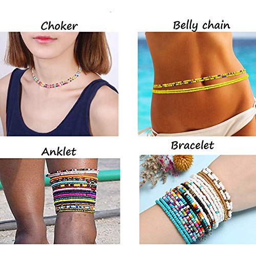 YBMYCM - واي بي ام واي سي ام طقم خلخال وسلاسل خصر من خرز بوهيمي ملون للصيف للنساء والفتيات