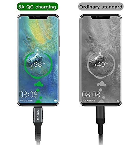 YESIDO - كابل شحن وبيانات نوع C لـ USB تيار 5 امبير للشحن السريع من يسيدو، اسود، 1.2 متر، CA-36، لهواتف خلوية