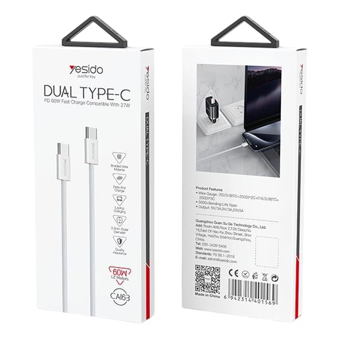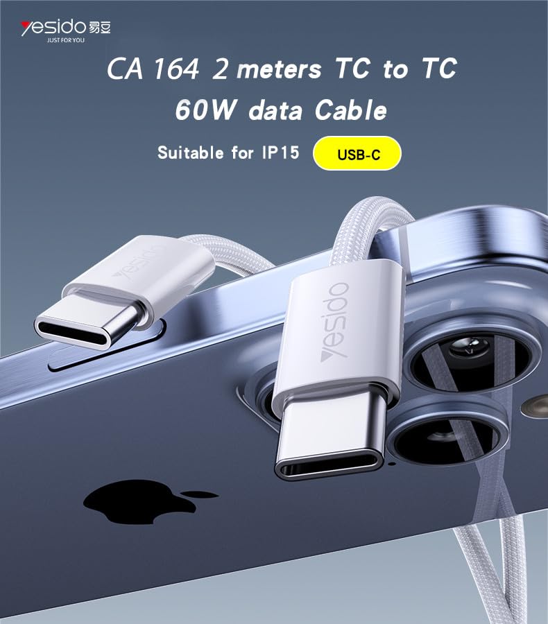 Yesido - Yesido كابل شحن بيانات USB-C / Type-C من ييسيدو CA164 بقوة 60 واط