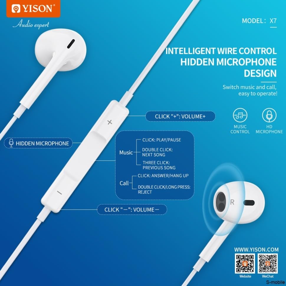 Generic - سماعات يسون-X7 للاستماع للموسيقي، إصدار بتقنية بلوتوث V5.0 وصوت ستيريو بمسافة نقل 3 متر - اتصال سلكي ولاسلكي